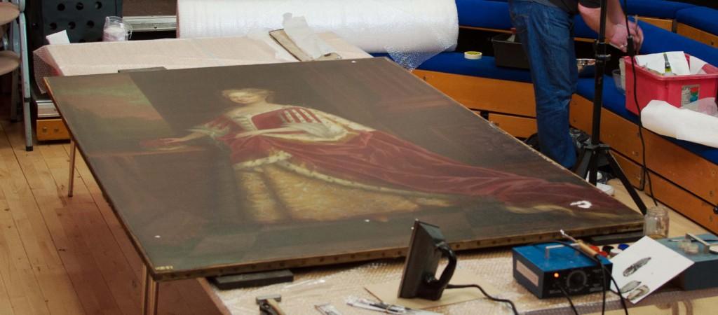 The painting was of Caroline of Anspach, queen of George II, made in the 18th century. The painting still looks good for the age it is. But because of a recent visitor accident it needed to be fixed.